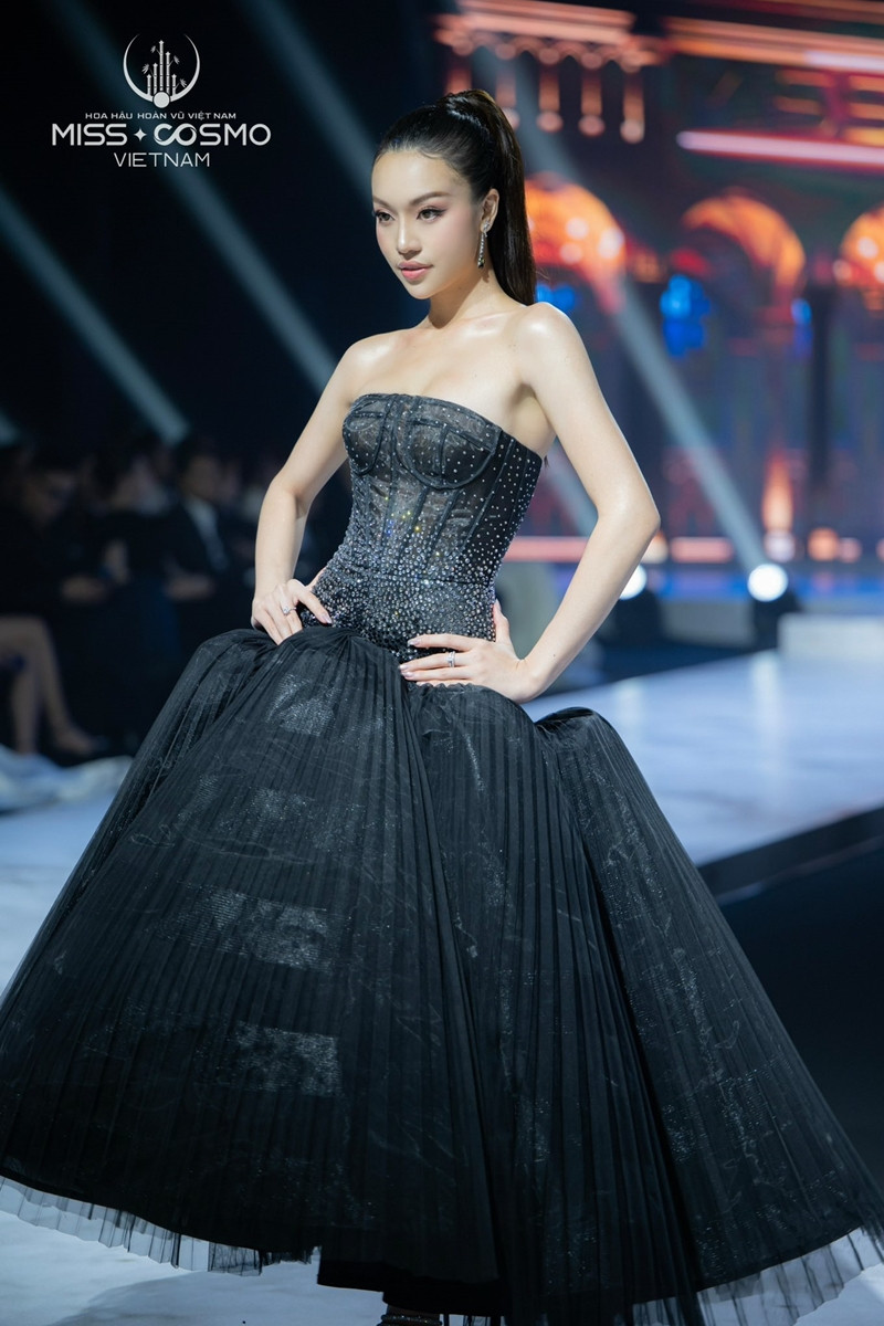 Hành trình nhan sắc của Thùy Vi bắt đầu từ những bước chân non trẻ tại Miss Grand Vietnam 2023, nơi cô lọt top 10. Không dừng lại ở đó, người đẹp tiếp tục chinh phục Miss Idol Vietnam 2024 và đăng quang. Trở lại với Miss Cosmo Vietnam 2025, Thùy Vi hiểu rõ mỗi lần vấp ngã đều là cơ hội để đứng dậy mạnh mẽ hơn. "Tôi không chọn an toàn vì sợ bỏ lỡ. Bởi vì chỉ có dấu ấn mới khai phá được những phiên bản sắc bén nhất của chính mình", cô chia sẻ với VietNamNet. Thùy Vi đang theo học chương trình Cử nhân Quản trị Kinh doanh tại Đại học Kinh tế Quốc dân, đồng thời hoạt động chuyên nghiệp trong lĩnh vực người mẫu. Tại đêm thẩm định của Miss Cosmo Vietnam 2025, Thùy Vi không chỉ giành giải Best body mà còn lọt Top 5 Người đẹp Biển. Trong thiết kế dạ hội, cô khoe trọn đường cong quyến rũ và toát lên vẻ sang trọng, bản lĩnh. Khi được hỏi về giá trị cốt lõi đại diện cho bản thân, Thùy Vi không ngần ngại chọn lòng trắc ẩn. Điều này giúp cô nhìn thế giới bằng thấu cảm thay vì phán xét, lắng nghe và yêu thương nhiều hơn. Thùy Vi sinh ra trong một gia đình đầy yêu thương, chưa từng trải qua biến cố lớn nhưng không có nghĩa cô không trải qua thử thách. Quyết định sống xa nhà từ 18 tuổi giúp người đẹp đối diện với cô đơn, tự mình quyết định và học cách vấp ngã rồi đứng dậy. Thùy Vi tiết lộ hai sở thích tưởng chừng trái ngược: chơi game Liên Quân và đọc sách. Game giúp cô "xả" năng lượng tiêu cực, còn đọc sách như cuốn "Đừng hoài phí tuổi trẻ" mang lại sự điềm tĩnh và định hướng. Về tình yêu, Thùy Vi quan niệm nó là một điều đẹp đẽ, là liều thuốc cho trái tim, nhưng cũng có thể là 'tác dụng phụ' nếu ta không biết giữ cân bằng. Cô tin vào tình yêu chân thành nơi cả hai cùng tôn trọng và nâng đỡ nhau. Tại cuộc thi, cô mang đến dự án hướng đến việc hỗ trợ trẻ em vùng núi Tây Nguyên, đặc biệt là các em bị khe hở môi - vòm với niềm tin rằng "sức mạnh của một hoa hậu không nằm ở danh hiệu mà ở những gì cô ấy để lại sau ánh hào quang".